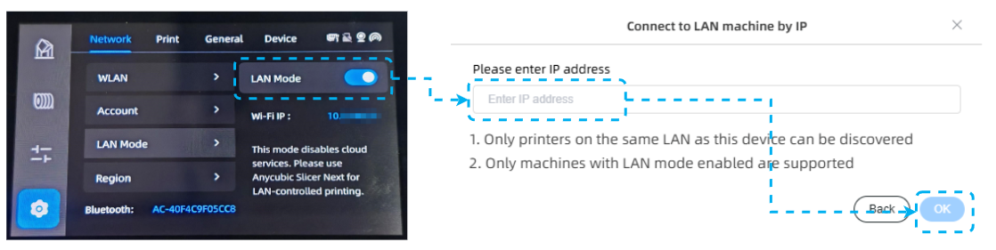 - В Anycubic Slicer Next вручную введите этот IP-адрес и подтвердите подключение.